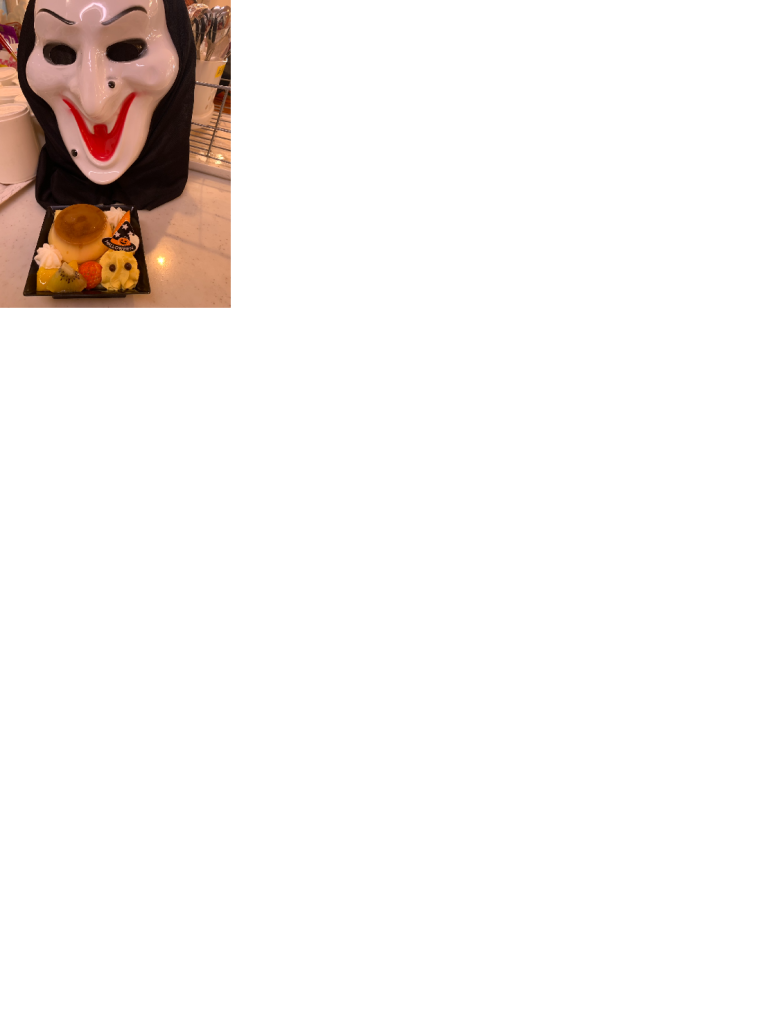 本日のおやつは、ハロウィン仕様になっているプリンアラモードをお出ししました。